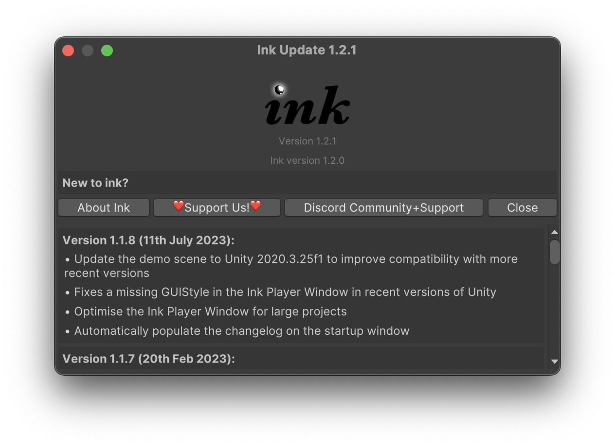 You may optionally install Inky (the text editor for Ink) to experiment with our story as you write it. https://www.inklestudios.com/ink/